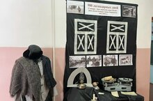Инсталляция воспроизводит часть комнаты времен блокады Ленинграда: заклеенное бумагой крест на крест окно, фотографии, пожелтевшие письма с фронта, стол. На ней керосиновая лампа, весы, свеча, детская игрушка. У стола зимний костюм с наброшенным на него пуховым платком. Создается впечатление, что хозяин блокадной комнаты только что вышел или…Всю неделю с 27 по 30 января инсталляция будет находиться в фойе школы.