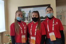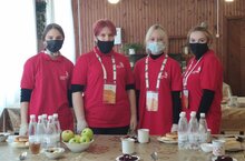 Волонтеры службы сервиса - студентки 406 группы Мария Орлова, Алина Ларюхина и Анастасия Щукина помогают командам-участницам на площадках чемпионата.