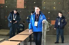 A1. Закрепление пожарно-спасательной верёвки за конструкцию, вязание альпинистских узлов. Время на выполнение задания не превышает 3 минуты.