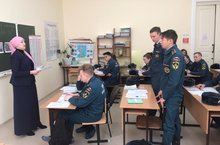 В ГАПОУ «Тетюшский государственный колледж гражданской защиты» продолжается декада ПЦК филологии, психолого-педагогических и социально-гуманитарных дисциплин, в рамках которой преподаватель иностранного языка Залалетдинова Р.И. и курсанты 402 и 407 группы специальности «Защита в чрезвычайных ситуациях» показали открытый урок «Моя будущая профессия - спасатель». Под умелым руководством Рамили Исламовны студенты выполняли лексико-грамматические упражнения, упражнения по прочитанному тексту, продемонстрировали высокий уровень владения лексическим материалом по изучаемой теме, великолепно справились с составлением монологов и диалогов. Решению поставленных задач урока способствовало создание языковой среды. Преподаватель выступал в роли речевого партнера, направляя и корректируя самостоятельные высказывания студентов.