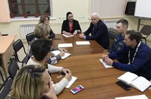 После торжественного открытия Чемпионата состоялось рабочее совещание по вопросам развития ресурсного центра и МФЦСК с участием менеджера компетенции «Пожарная безопасность» заведующий отделом образовательных проектов ГБПОУ «Технический пожарно-спасательный колледж имени Героя Российской Федерации В.М. Максимчука» (г.Москва) Дмитрия Юрьевича Баранова и представителей администрации Тетюшского муниципального района, организации работодателей, администрации Тетюшского колледжа гражданской защиты.