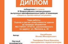 Так, на Всероссийском конкурсе выпускных квалификационных работ, дипломная работа И.Калайбашева, под руководством Е.И. Тимофеевой, была удостоена диплома III степени.