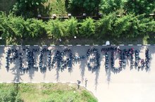 В атмосфере единения и взаимопонимания более 180 студентов 1-4 курсов выстроились в форме фраз «России – это мы!», «Ура», в знак уважения к родной стране и ее традициям победам.. -