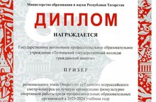 Тетюшский государственный колледж гражданской защиты стал призером регионального этапа Открытого публичного всероссийского смотр-конкурса на лучшую организацию физкультурно-спортивной работы среди профессиональных образовательных организаций в 2023-2024 учебном году в номинации "Лучшая организация физкультурно-спортивной работы среди профессиональных образовательных организаций (колледж, техникумы) до 1000 студентов" .