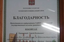 Преподаватель информатики ГАПОУ «Тетюшский государственный колледж гражданской защиты» С.Е.Власов награжден Благодарностью Главы Тетюшского муниципального района Р.Х.Сафиуллова за добросовестный труд в системе образования района! Коллектив колледжа поздравляет талантливого педагога и желает дальнейших профессиональных успехов!