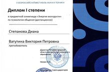 Поздравляем курсанта 112 группы специальности "Организация оперативного (экстренного) реагирования в ЧС Диану Степанову с первым местом в олимпиаде по психологии общения.