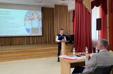 Выпускники специальности "Защита в чрезвычайных ситуациях" 402 группы представляют государственной аттестационной комиссии свои выпускные квалификационные работы.