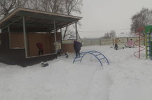 Помощь родителей в уборке снега на детской площадке. 06.02.2018