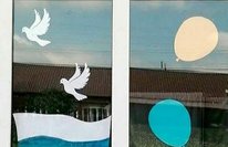 Школьники участвуют в акции "Окна России", посвещенная Дню России.