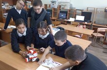 Обучающиеся на занятии собрали мобильного робота.