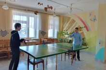 В рамках недели ЗОЖ учащиеся и учителя соревнуются в игре теннис.