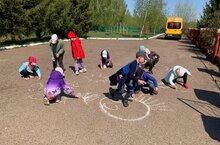 Среди учащихся начальных классов прошёл конкурс рисунков на асфальте "Мы за мир! ", посвященный Дню Весны и Труда.