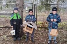 Вместе с родителями ребята изготовили кормушки. Затем воспитатель Морозкина И. В. помогла им разместить кормушки на территории школы и наполнить угощениями.