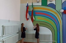 Каждая учебная неделя начинается с поднятия флагов под гимны РФ и РТ.