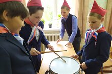 В школе оформлена выставка, посвященная 100-летию Пионерской организации. Выставлены атрибуты и символика пионеров, а также альбомы из истории школьной жизни пионеров.