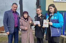 В предверии праздника Дня Победы тимуровцы приняли участие в акции "Поздравь ветерана". Вместе с работниками СДК поздравили вдову Трифонову Т.Ф. Рассказали стихи и спели песню.