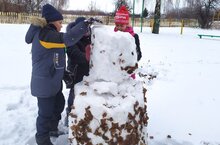 В рамках декады ЗОЖ, учащиеся организовали игры на свежем воздухе. Слепили фигуры и дали им имена.