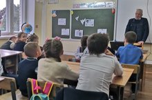 В начальных классах прошла встреча с подполковником в запасе А.А.Сумбаевым, бывший выпускник нашей школы.. Анатолий Аркадьевич рассказал ребятам о своем жизненном пути, о дружбе, которая в армии так необходима, о своей работе, в каких военных действиях принимал участие. Вспомнил о событиях в Беслане. Дети активно задавали вопросы о жизни, о семье, о его наградах.