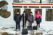 Отряд тимуровцев отчистил от снега обелиск павшим воинам односельчанам в с.Пролей-Каши.