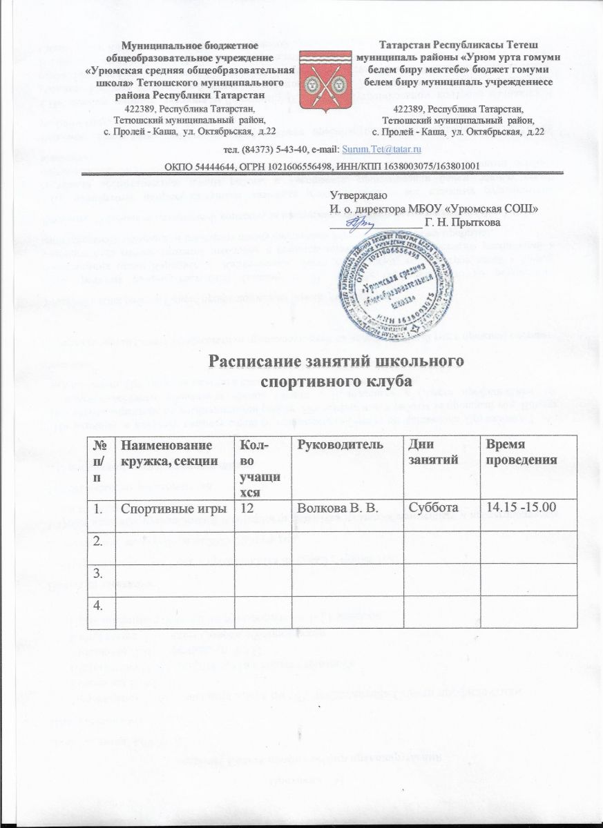 Свидетельство регистрации в реестре школьных спортивных клубов (смотреть)
