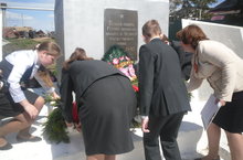 Учащиеся школы возложили гирлянду и венок к памятнику павших в Великой Отечественной войне.