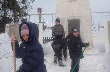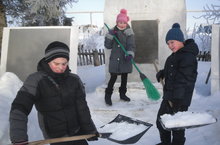Учащиеся 3,4 классов очистили от снега обелиск памяти павшим землякам.