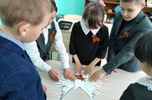 В преддверии 80-летия Великой Победы в школе была организована Всероссийская акция «Голубь Мира – Голубь Победы». Учащиеся вырезали из бумаги ладошки, символизирующие мир и память о героях войны, а также тщательно продумывали слова поддержки и признания воинам разных лет, вкладывая в них личные размышления о значении Победы.