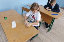 С целью формирования у детей конструктивных навыков прошёл мастер-класс "Умелые ручки". В начале занятия учитель продемонстрировала последовательность складывания листа бумаги квадратной формы, и ребята с большим старанием приступили к выполнению задания "Парашют".