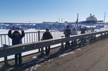 Учащиеся приняли участие в акции и взялись за руки в виде буквы V.