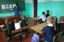 На классном часе «Знай правила дорожного движения» учащиеся вспомнили дорожные знаки. С помощью загадок, стихов ребята закрепили как правильно переходить дорогу, как необходимо обходить автобус при переходе проезжей части.