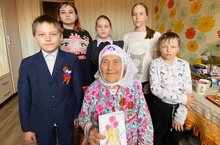 Дети поздравили уважаемых ветеранов с предстоящим праздником и подарили им памятные открытки и рисунки.