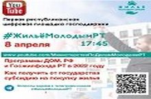 08 апреля 2022 года состоится прямой эфир #ЖильёМолодымРТ на YouTube канале по ссылке https://www.youtube.com/c/МинистерствоподеламмолодежиРТ/featured