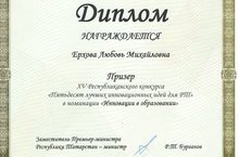 В XV Республиканском конкурсе «Пятьдесят лучших инновационных идей для Республики Татарстан» приняли участие педагоги Князевской школы: Ерхова Л.М. – учитель биологии; Гончарова С.Ю. – учитель географии; Самойлова Т.И. – учитель истории и обществознания. Из 1912 заявленных в этом году проектов проект Ерховой Л.М. заняла призовое место, она стала призёром конкурса и была награждена дипломом Министерства образования и наука Республики Татарстан.