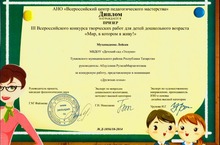 Воспитанница МБДОУ-детский сад "Эллуки" Мухамадеева Лейсан под руководством педагога Абдуллиной Рузили Мирзагитовны стала призером III Всероссийского конкурса творческих работ для детей дошкольного возраста "Мир, в котором я живу!" в номинации "Дружная семья". Поздравляем и желаем дальнейших творческих успехов!