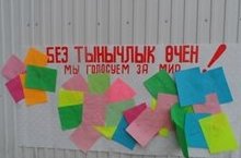 В рамках акции «#Победнаявесна #Жинуязы» учащиеся 7 класса провели акцию «Мы голосуем за мир». Учащиеся и другие жители села поместили свои «руки» с личной подписью на специальном стенде, тем самым показав, что они за мир на земле.