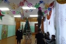 Учащиеся 8 класса украсили ёлку и подготовили актовый зал к праздничным мероприятиям. Все готово! Мероприятия состоятся 28, 29 декабря. Ждем всех в гости. С наступающим Новым годом!