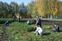 Мәктәп яны участогында иртә яздан көзгә хәтле кызу эш кайнады. Укучылар һәм укытучылар бакчада бик тырышып бәрәңге, суган, кәбестә, кишер, кызыл чөгендер үстерделәр. Сентябрьнең матур аяз көннәрендә уңыш җыеп алынды. Бу эштә бигрәк тә 8,9,10,11 нче класс укучылары актив булдылар. Ә бүген 8 нче класс укучылары мәктәп бакчасындагы кишер һәм кызыл чөгендерне җыеп алып бетерделәр. Молодцы! Уңыш бик мул чыкты.