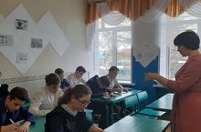 "Туган тел - Ватан нигезе" дип аталган акциядә 8-9 нчы класс укучылары катнаштылар. Алар татар телендә диктант яздылар.