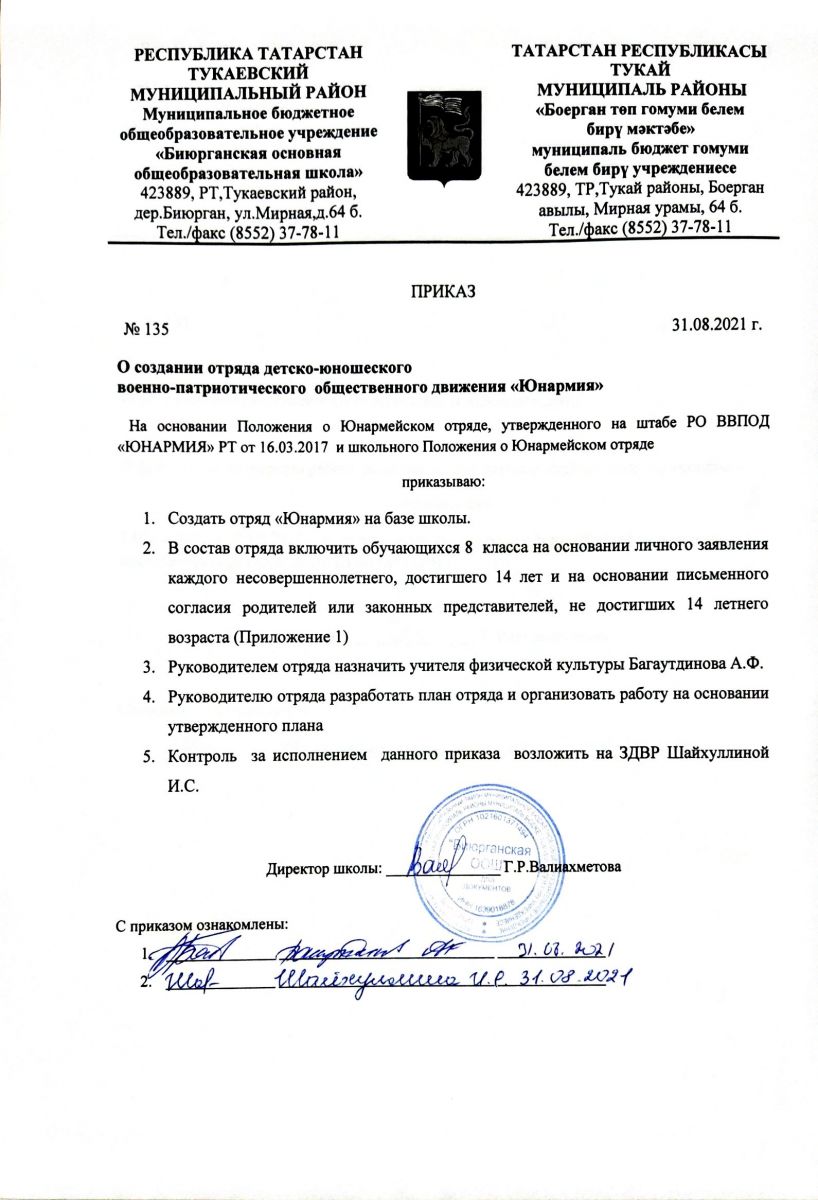 Муниципальное бюджетное общеобразовательное учреждение «Биюрганская основная общеобразовательная школа» Тукаевского муниципального района РТ/Татарстан Республикасы Тукай муниципаль районы "Боерган төп гомуми белем бирү мәктәбе" муниципаль бюджет гомуми белем бирү учреждениесе