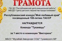 ТАССРның 100 еллыгына багышланган «Минем яраткан ягым» республика конкурсында «Викторина " номинациясендә җиңүче булды