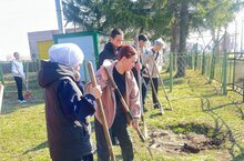 Сотрудники и ученики школы вооружились необходимым инвентарём вышли на субботник и приступили к работе