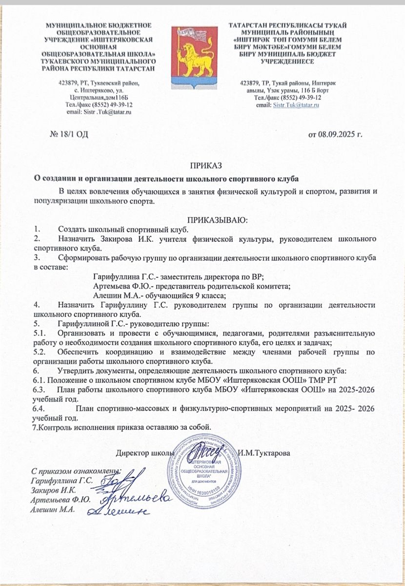 Муниципальное бюджетное общеобразовательное учреждение «Иштеряковская основная общеобразовательная школа» Тукаевского муниципального района Республики Татарстан/ Татарстан Республикасы Тукай муниципаль районы "Иштирәк төп гомуми белем бирү мәктәбе" муниципаль бюджет гомуми белем бирү учреждениесе
