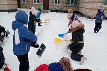 Воспитанники МБДОУ - детского сада "Лэйсэн" ежедневно активно проводят время на свежем воздухе. Вот и сегодня воспитанники старшей - подготовительной группы "Радуга"решили слепить своими руками горку для зимних катаний на санках. Также у каждого воспитанника есть любимая лопата для уборки детской территории. Трудовое воспитание неотъемлемая часть прогулки для воспитанников старшего возраста.