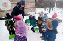 Ежедневная прогулка воспитанников МБДОУ – детского сада «Лэйсэн» проходит познавательно. Сегодня воспитанники младшей группы «Цыплятки» решили слепить снеговика. Многие воспитанники признались воспитателю группы о том, что лепили снеговика впервые и очень обрадовались снежному гостю игровой площадки.