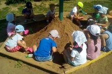 Воспитанники МБДОУ - детского сада "Лэйсэн" ежедневно с радостью играют в песочнице. Игры с песком позитивно влияют на эмоциональное состояние ребенка, способны улучшить его эмоциональное самочувствие, настроить на добродушный лад. Играя в песочнице с другими детьми, ребенок приобретает навык общения, социализируется.