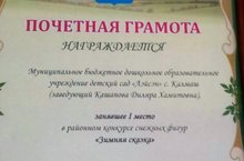 МБДОУ - детский сад "Лэйсэн" награждается почётной грамотой Исполнительного комитета Тукаевского района за участие в районном конкурсе "Зимняя сказка", где занял 1 место! Это совместный труд детей, сотрудников детского сада и, конечно же, родителей. Спасибо вам, уважаемые наши родители, за активное участие в жизни детского сада! Без Вас мы не смогли бы добиться таких результатов!