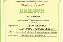 Татар сәнгатенең ачык региональ фестиваль- конкурсында "Ләйсән" балалар бакчасының зурлар төркемендә тәрбияләнүче балалар 2 нче дәрәҗә диплом белән бүләкләнделәр.
