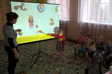 В целях внедрения ИКТ при обучении детей двум государтвенным языкам успешно пользуемся играми, разработанные для выполнения на экране проекционной техники. С помощью таких игр воспитанники лучше вопринимают информацию и легко входят в диалог с воспитателем.