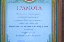 24 апрель көнне район күләмендә узган Тукай шигырьләрен сәнгатьле сөйләү конкурсында 4 класс укучысы Сахипгараева Язиля 3 нче урынны яулады. Җитәкчесе Гилфанова Альмира Азатовна.Уңышлар телибез Язиләгә һәм аның җитәкчесенә. 25.04.2014