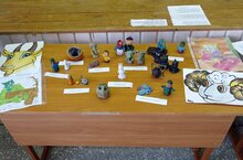 Тукай коненэ кургэзмэ. Укучылар папье-машедан экият геройлары ясады.